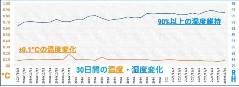 デフロストによる結露がない: 冷却面と空気の温度差が極めて小さい、庫内の壁面や天井が露点温度を下回りにくくなります。カビや菌の増殖源となる「滴り落ちる結露」の発生を最小限に抑えます。